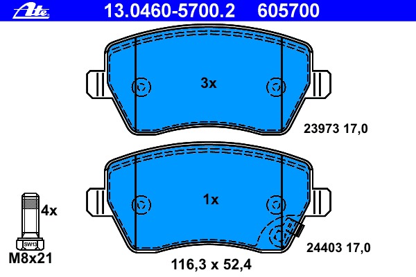 ![]() 13.0460-5700.2 Комплект тормозных колодок, дисковых | ||||||