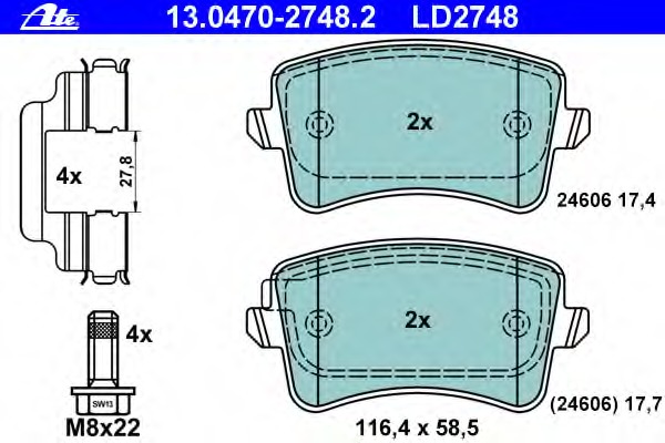 ![]() 13.0470-2748.2 Комплект тормозных колодок, дисковых | ||||||