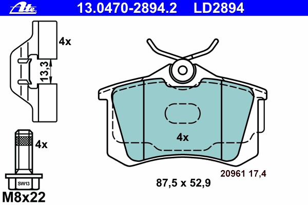 ![]() 13.0470-2894.2 Колодки тормозные VAG A2/A3/TT/GOLF 4/FABIA/OCTAVIA -10 задн. CERAMIC | ||||||