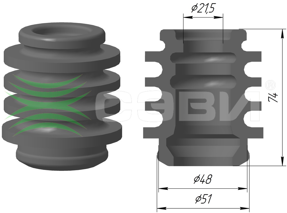 Буфер хода сжатия для а/м ВАЗ: 2110-2115, 2170-2172, 1117-1119, 2190-2192, 2194, DAEWOO: Lanos (97-), Nexia (95-), ZAZ: Chance (02-), Sens (02-) "СЭВИ-ЭКСТРИМ"