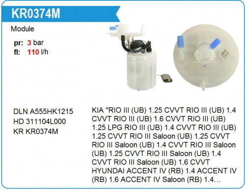 ![]() KR0374M Модуль в сборе с бензонасосом Kia Rio | ||||||