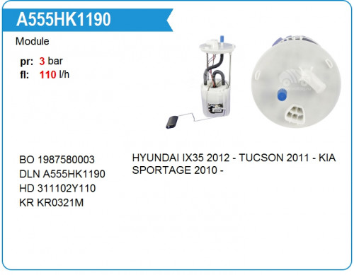 По артикулу A555HK1190 в разделе '' найден товар Модуль в сборе с бензонасосом Hyundai Kia от производителя DELON. На данный момент модуль в сборе с бензонасосом hyundai kia отсутствует в наших представительствах в Севастополе, но мы можем предложить оформить заказ на товар с артикулом A555HK1190 с достакой в течении 999 дней. С ценами и наличием товара Вы можете ознакомиться во вкладке 'Остатки