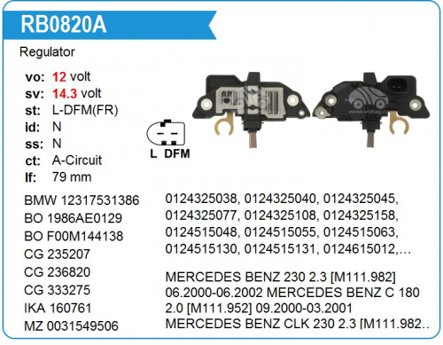 ![]() RB0820A Регулятор генератора Mercedes Bosch | ||||||
