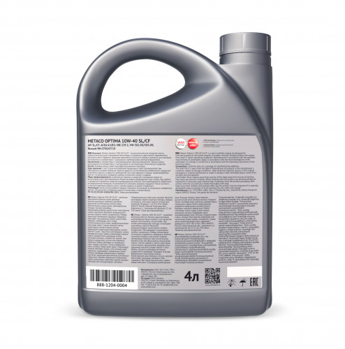 ![]() 888-1204-0004 Масло моторное METACO OPTIMA 10W40 SL/CF 4L | ||||||