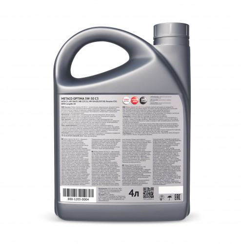 ![]() 888-1205-0004 Масло моторное METACO OPTIMA 5W30 C3 4L | ||||||