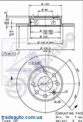 ![]() 08.4250.14 Тормозной диск | ||||||