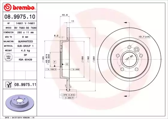 ![]() 08.9975.11 Диск тормозной задн FORD: C-MAX 07-, FOCUS C-MAX 03-07, FOCUS II 04-, FOCUS II Turnier 04-, FOCUS II кабрио 06-, FOCUS II седан 05- \ VOLVO: C30 06-, C70 II каб | ||||||