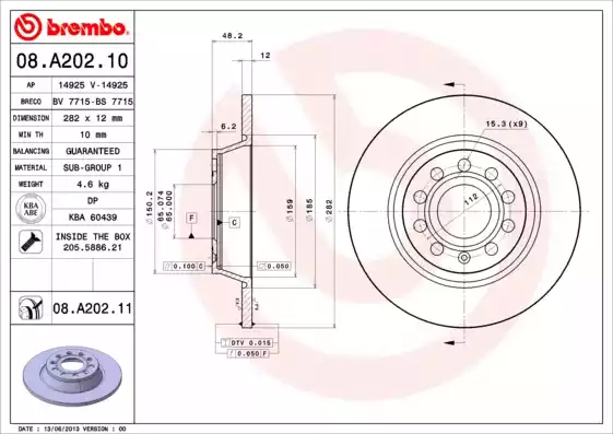![]() 08.A202.10 Тормозной диск | ||||||