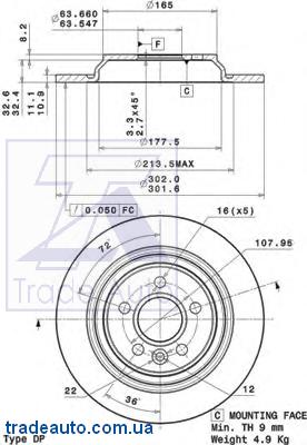 ![]() 08.A537.11 Диск тормозной VOLVO S60/S80/V60/V70/XC70 07- задн. (с эл. стоян. торм.) | ||||||