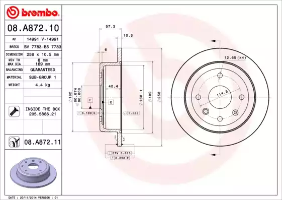 По артикулу 08.A872.10 в разделе 'Тормозной диск' найден товар Диск тормозной задн, CHEVROLET: LACETTI 1.4 16V/1.6/1.8/2.0 D 03-, NUBIRA 1.4/1.5/1.6/1.8/2.0/2.0 D 05-, NUBIRA 1.5/1.6/1.8/2.0/2.0 D 05- \ DAEWOO: LACETTI 1.4/1.6/1 от производителя BREMBO. На данный момент диск тормозной задн, chevrolet: lacetti 1.4 16v/1.6/1.8/2.0 d 03-, nubira 1.4/1.5/1.6/1.8/2.0/2.0 d 05-, nubira 1.5/1.6/1.8/2.0/2.0 d 05- \ daewoo: lacetti 1.4/1.6/1 отсутствует в наших представительствах в Севастополе, но мы можем предложить оформить заказ на товар с артикулом 08.A872.10 с достакой в течении 3 дней. С ценами и наличием товара Вы можете ознакомиться во вкладке 'Остатки