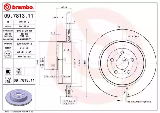 ![]() 09.7813.11 Диск тормозной SUBARU IMPREZA/LEGACY 01- 2.0 WRX STI задн. D=316 | ||||||