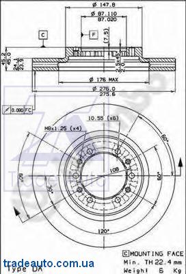 Диск тормозной передн MITSUBISHI: PAJERO II 90-00, PAJERO II Вездеход открытый 90-00, PAJERO SPORT 98-