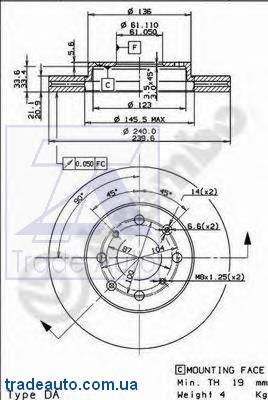 Диск тормозной HONDA JAZZ 02- 1.2-1.4 перед.вент. D=240