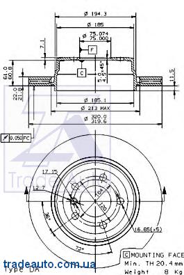 Диск тормозной BMW X3(E83)/X5(E53) 04- 2.0-3.0 задн.