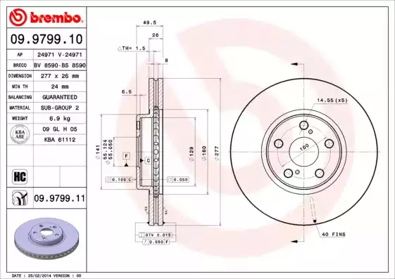 ![]() 09.9799.10 Диск тормозной передн TOYOTA: AVENSIS 03-, AVENSIS седан 03-, AVENSIS универсал 03- | ||||||