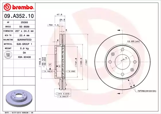 По артикулу 09.A352.10 в разделе 'Тормозной диск' найден товар Диск тормозной HYUNDAI SONATA EF/MAGENTIS/ELANTRA XD 00- вент. перед. 257 мм. от производителя BREMBO. На данный момент диск тормозной hyundai sonata ef/magentis/elantra xd 00- вент. перед. 257 мм. отсутствует в наших представительствах в Севастополе, но мы можем предложить оформить заказ на товар с артикулом 09.A352.10 с достакой в течении 3 дней. С ценами и наличием товара Вы можете ознакомиться во вкладке 'Остатки
