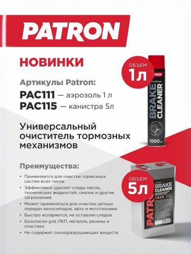 По артикулу PAC111 в разделе 'Автохимия' найден товар Очиститель тормозной системы 1000мл (нетто 545гр.) от производителя PATRON. Очиститель тормозной системы 1000мл (нетто 545гр.) можно купить в одном из наших представительств в Севастополе. Цены на товар с артикулом PAC111 Вы найдете во вкладке Цены/Остатки