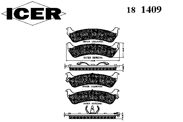 ![]() 181409 Комплект тормозных колодок, дисковых | ||||||