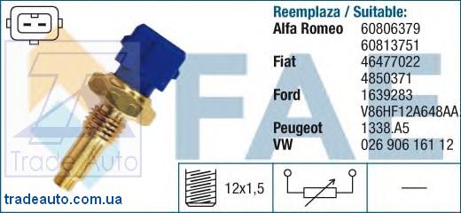'. Обратите внимание, что в катагоге 'Датчик' существует около 30 аналогов товара 'Датчик температуры охлаждающей жидкости' от таких брендов, как DITAS, EBERSPACHER, TRW LUCAS, VALEO. Датчик температуры охлаждающей жидкости используется более чем в 115 моделях автомобилей ALFA ROMEO, FORD, FIAT, LANCIA и других производителей .