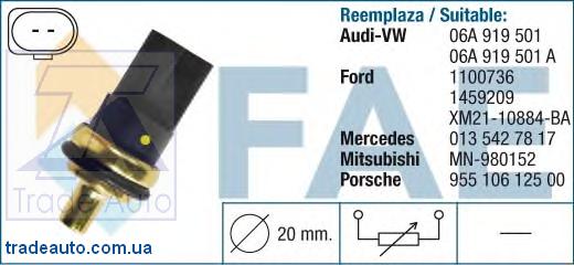 '. Обратите внимание, что в катагоге '' существует около 55 аналогов товара 'Температурный датчик охлаждающей жидкости' от таких брендов, как DITAS, AUTOMEGA (DELLO), BEHR/HELLA/Pagid, EBERSPACHER. Температурный датчик охлаждающей жидкости используется более чем в 798 моделях автомобилей FORD, AUDI, SEAT, MERCEDES-BENZ и других производителей .
