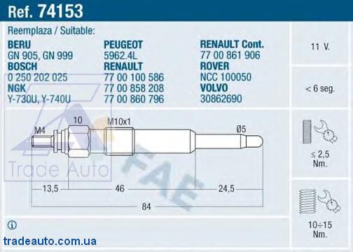![]() 74153 Свеча накаливания | ||||||