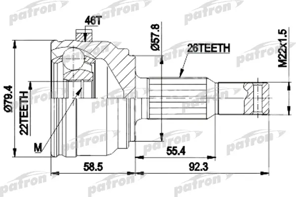 ШРУС наружн к-кт [A:26, B:22, D:79.4 ABS:46] CHRYSLER: NEON 00-01