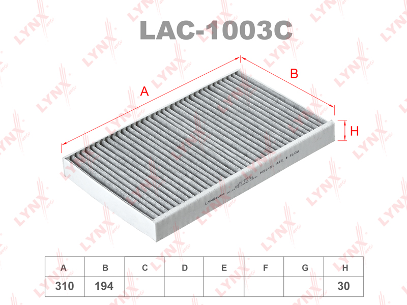 ![]() LAC-1003C Фильтр салонный угольный | ||||||