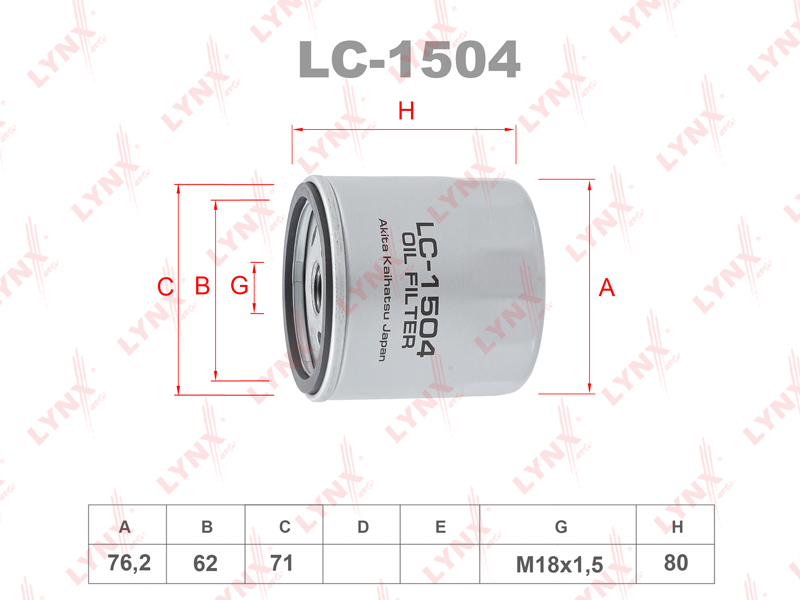 ![]() LC-1504 Фильтр масляный | ||||||